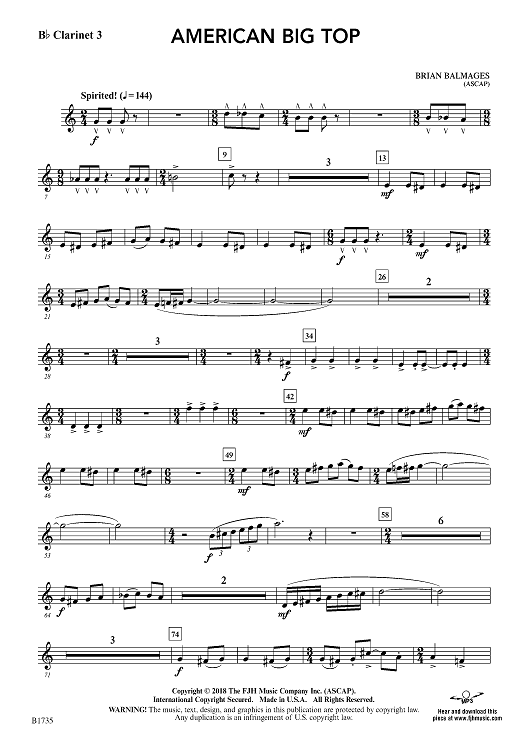Digital Sheet Music for American Big Top - Bb Clarinet 3 by Brian Balmages scored for Concert Band; id:501312