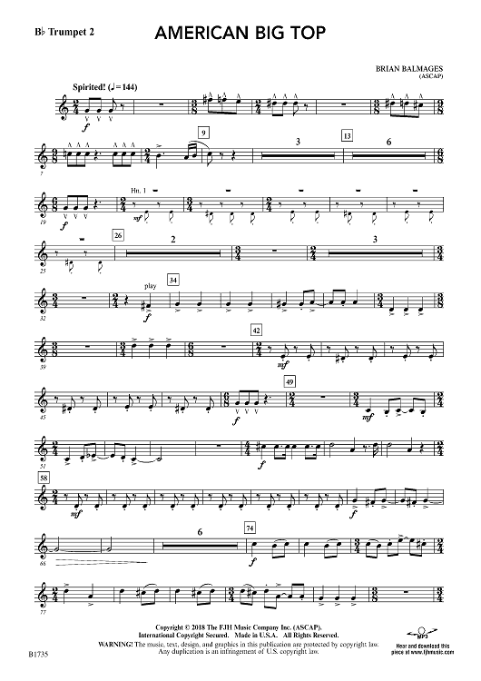 "American Big Top - Bb Trumpet 2" Sheet Music by Brian Balmages