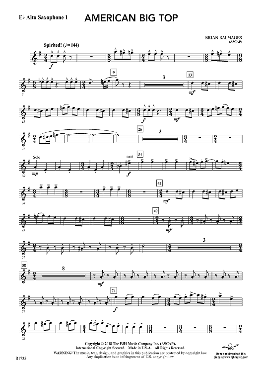 "American Big Top - Eb Alto Sax 1" Sheet Music by Brian Balmages
