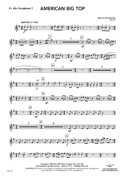 "American Big Top - Eb Alto Sax 2" Sheet Music by Brian Balmages