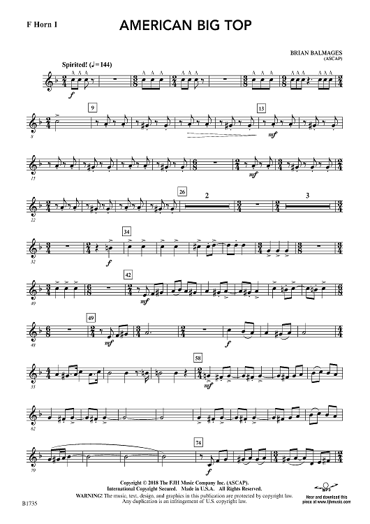 "American Big Top - F Horn 1" Sheet Music by Brian Balmages