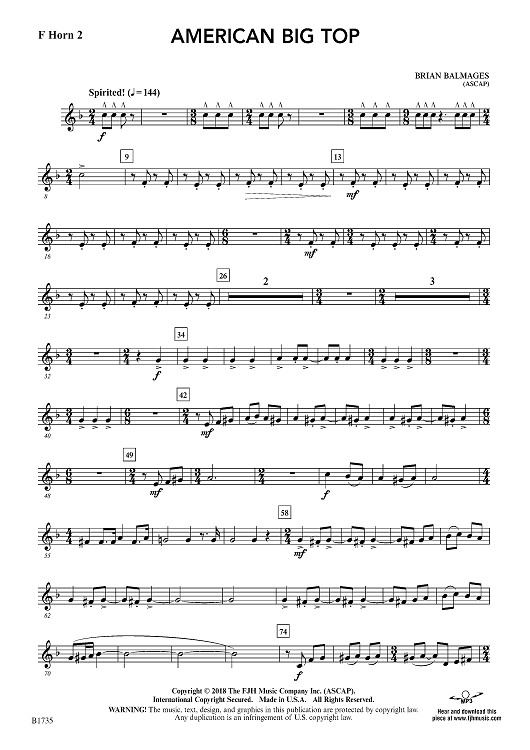 "American Big Top - F Horn 2" Sheet Music by Brian Balmages