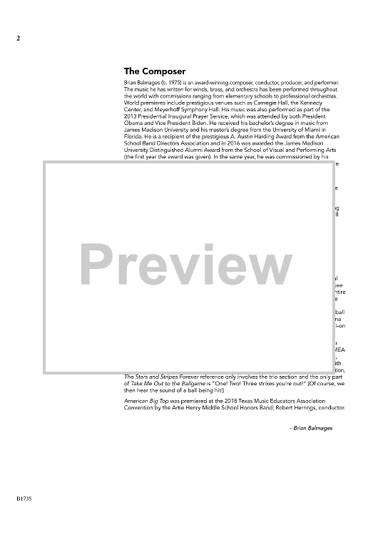 Digital Sheet Music for American Big Top - Score by Brian Balmages scored for Concert Band; id:496900