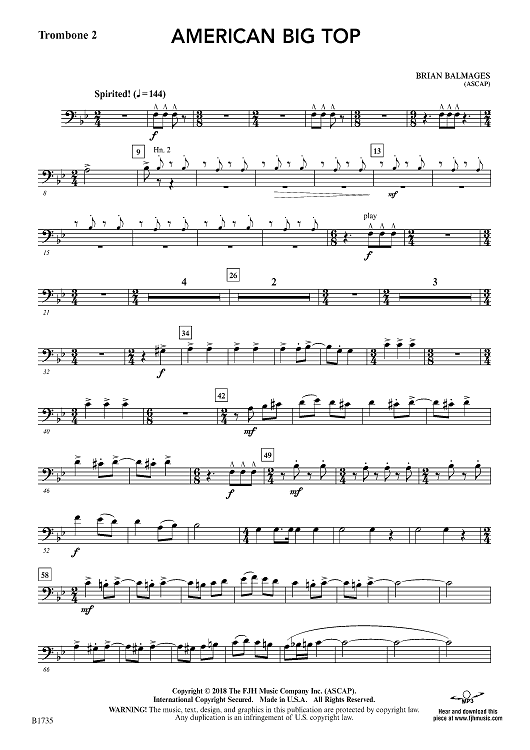 "American Big Top - Trombone 2" Sheet Music by Brian Balmages