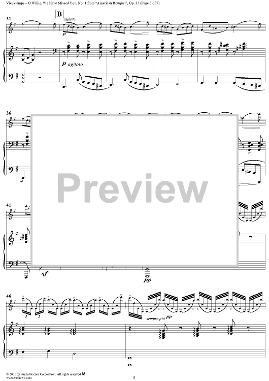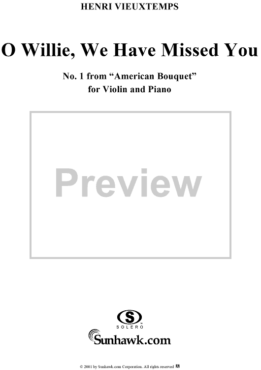 Digital Sheet Music for American Bouquet, No. 1: O Willie, We Have Missed You - Piano Score by Henri Vieuxtemps scored for Violin/Piano; id:264725