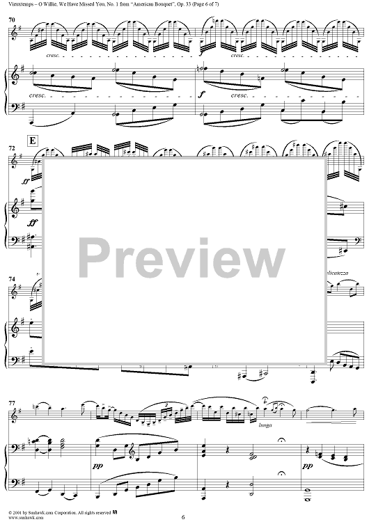 "American Bouquet, No. 1: O Willie, We Have Missed You - Piano Score" Sheet Music by Henri Vieuxtemps