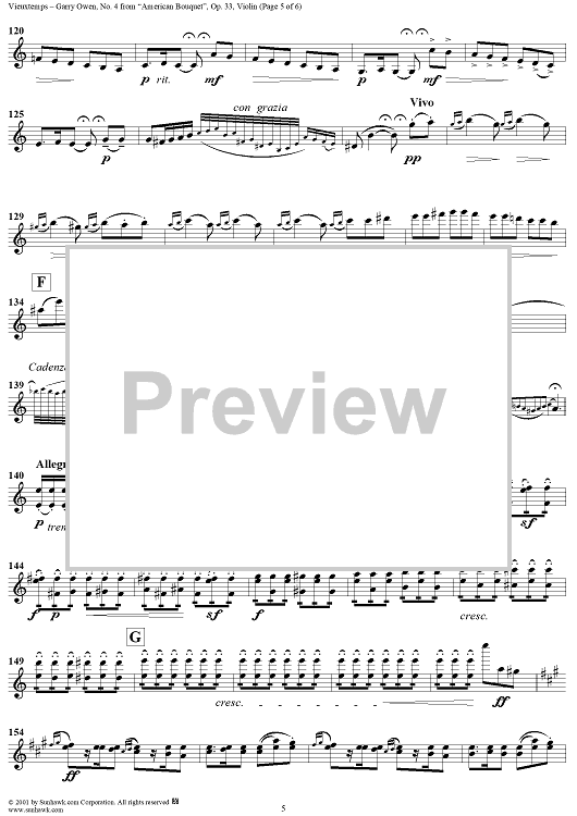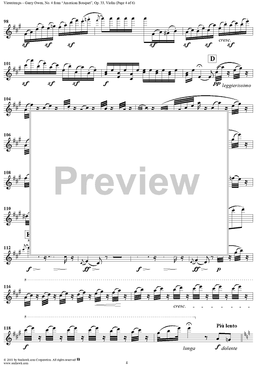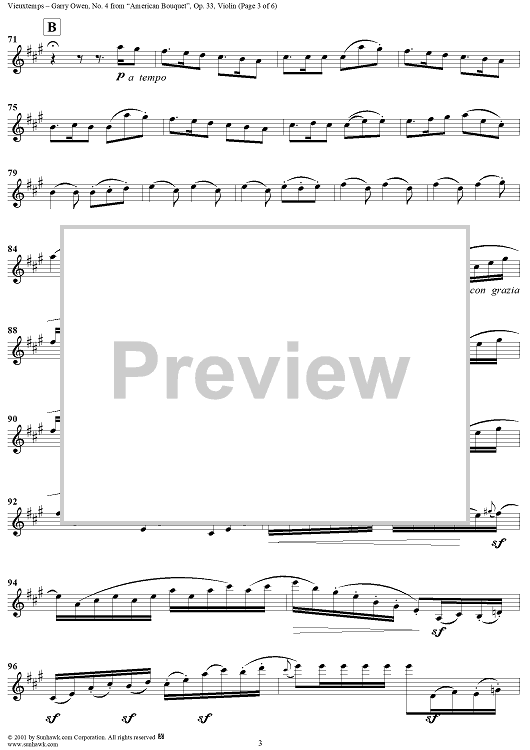 "American Bouquet, No. 4: Garry Owen - Violin" Sheet Music by Henri Vieuxtemps