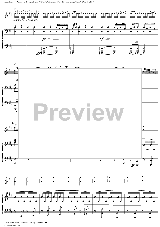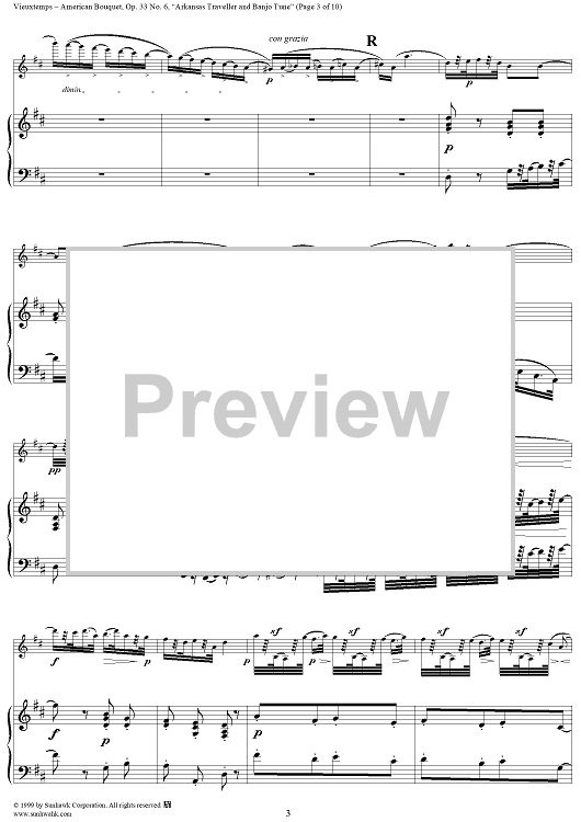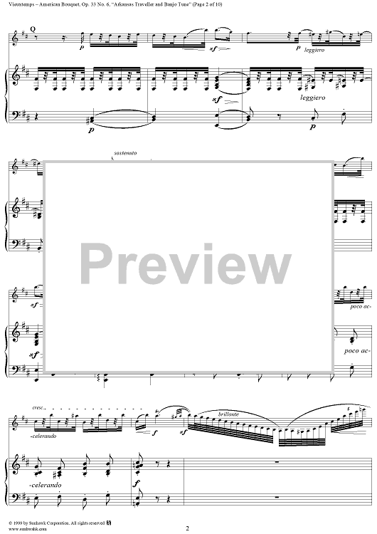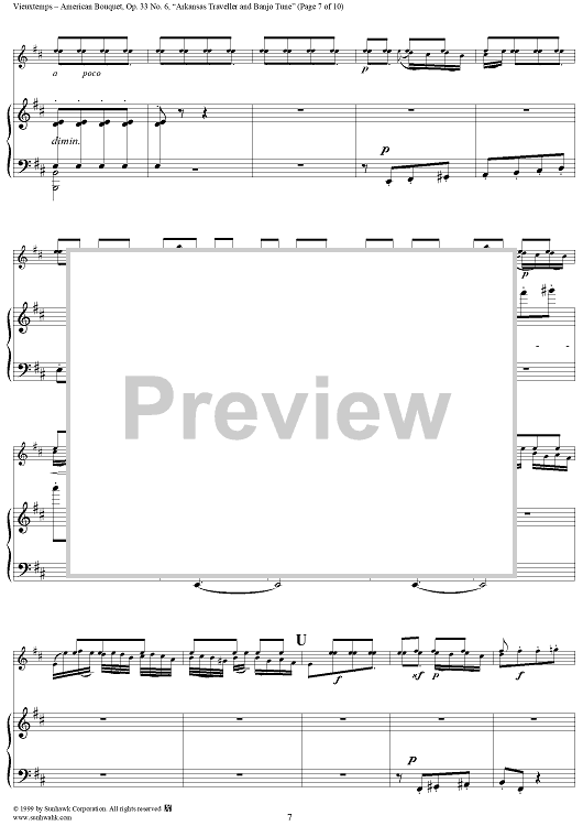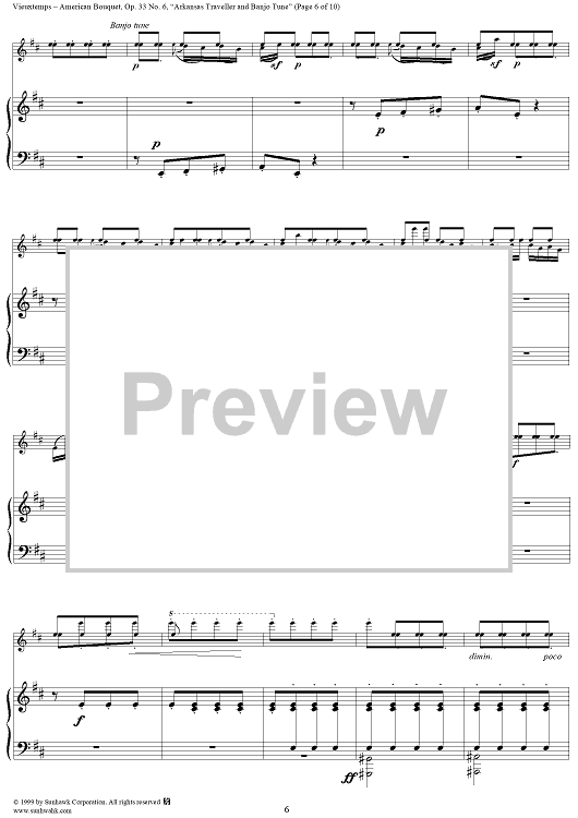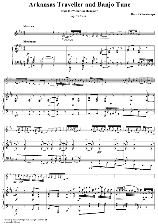 Digital Sheet Music for American Bouquet, No. 6: Arkansas Traveller and Banjo Tune - Piano Score by Henri Vieuxtemps scored for Violin/Piano; id:264741