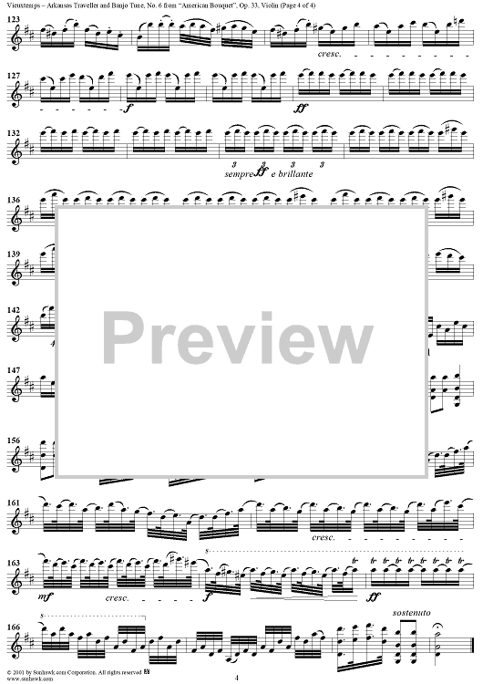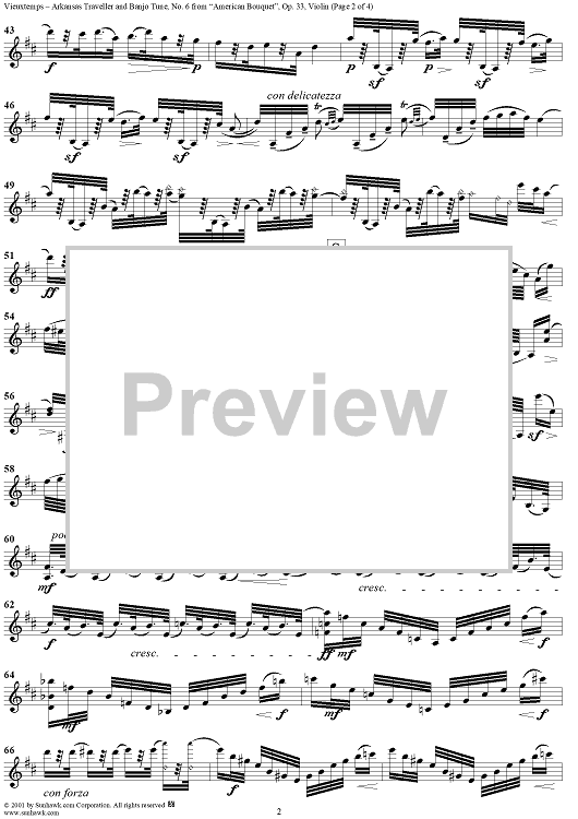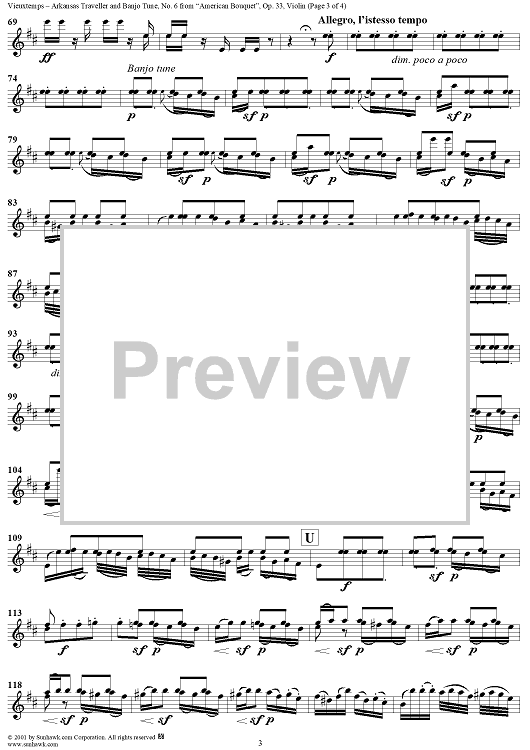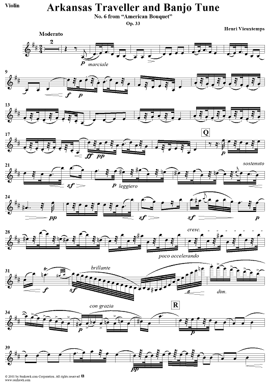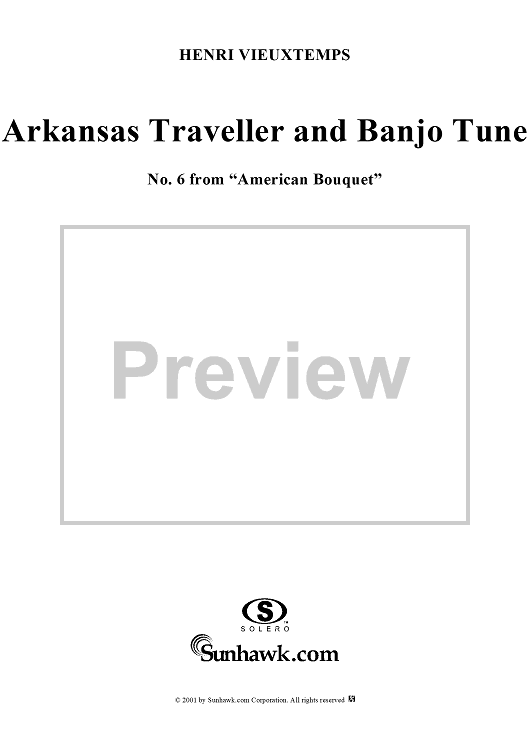 Digital Sheet Music for American Bouquet, No. 6: Arkansas Traveller and Banjo Tune - Violin by Henri Vieuxtemps scored for Violin/Piano; id:264745