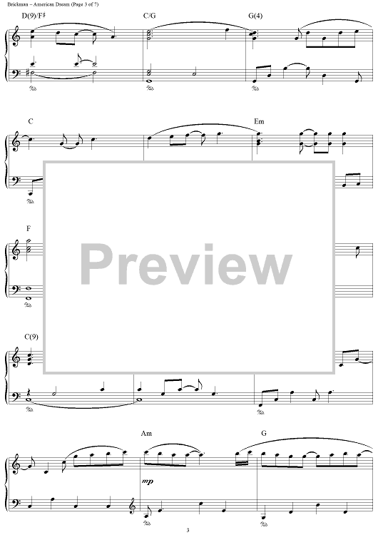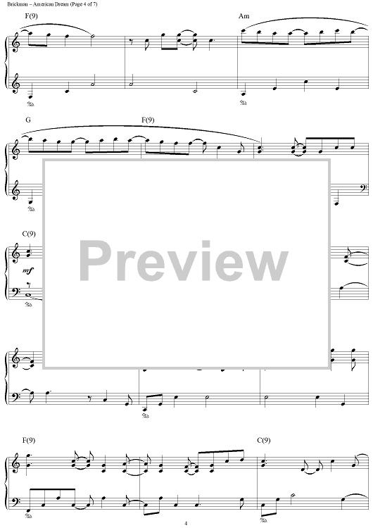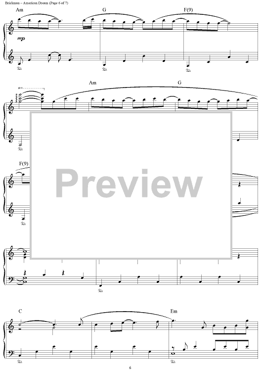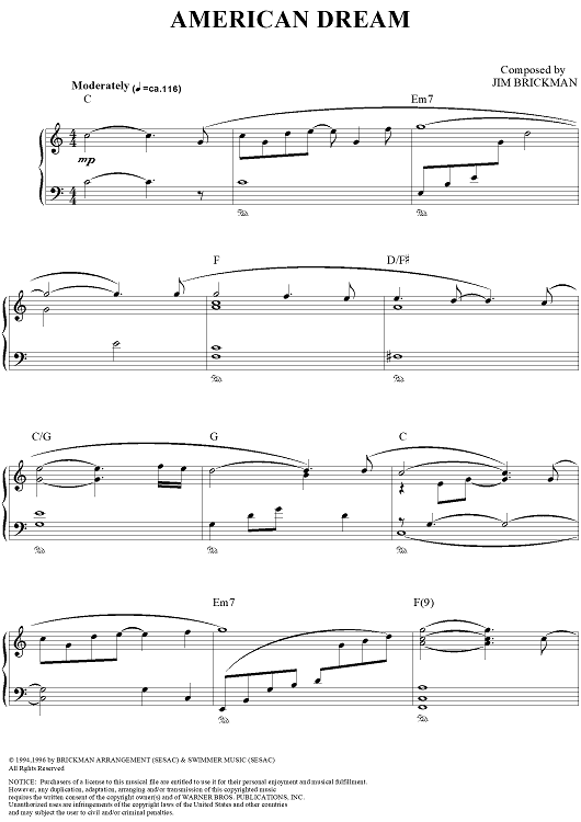 Digital Sheet Music for American Dream by Jim Brickman scored for Piano Solo; id:112757