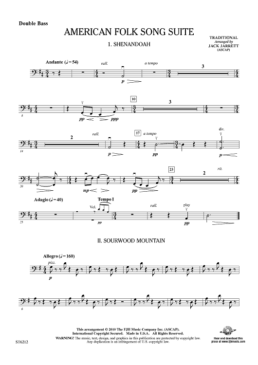 Digital Sheet Music for American Folk Song Suite - Double Bass by Traditional, Jack Jarrett scored for Orchestra; id:411573