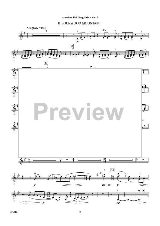 "American Folk Song Suite - Violin 2" Sheet Music by Traditional