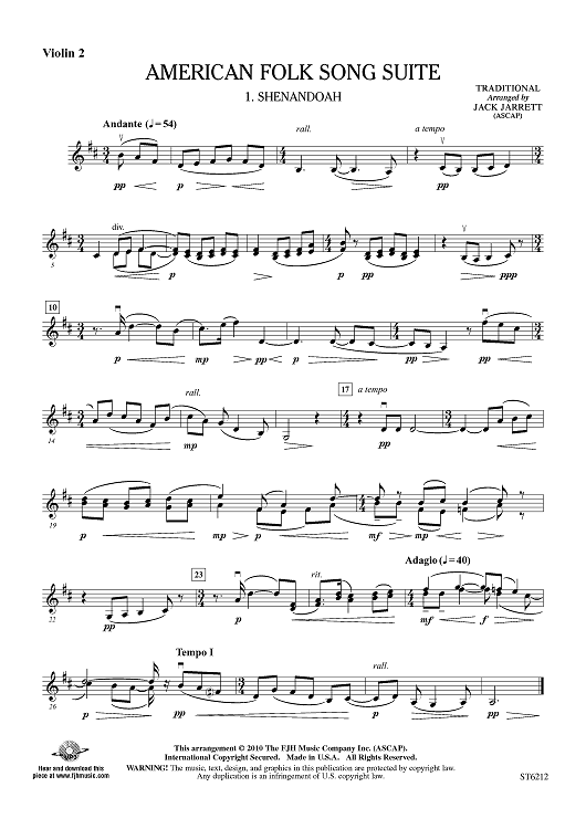 Digital Sheet Music for American Folk Song Suite - Violin 2 by Traditional, Jack Jarrett scored for Orchestra; id:411570