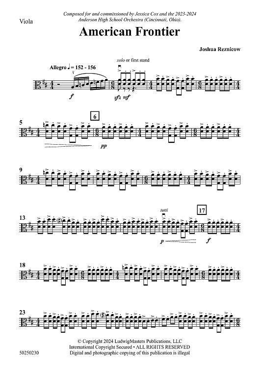Digital Sheet Music for American Frontier - Viola by Joshua Reznicow scored for Orchestra; id:504611