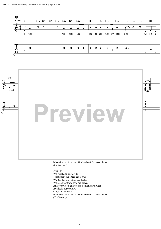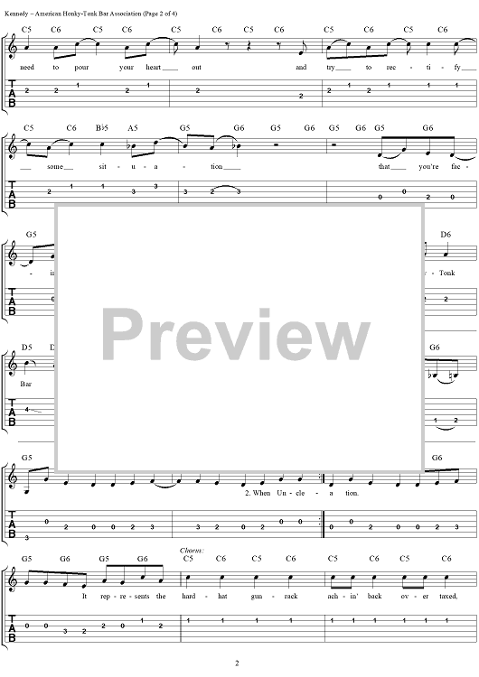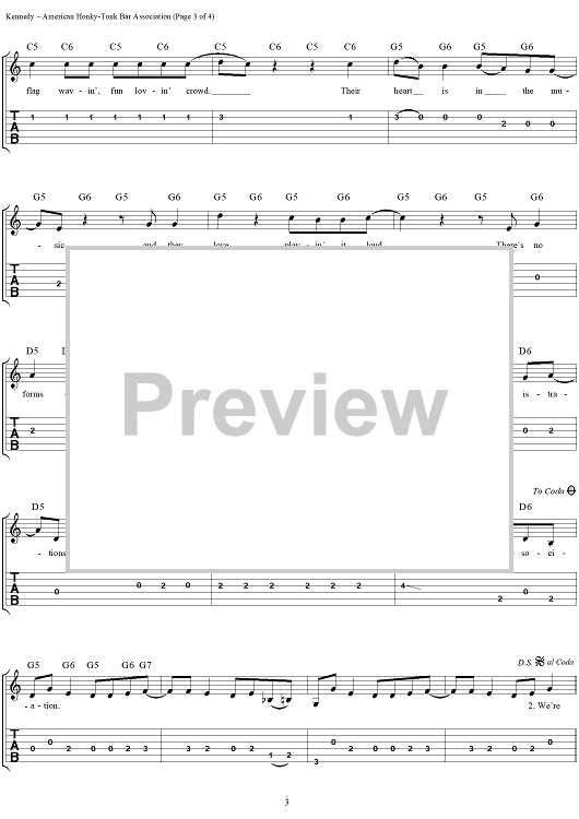 Digital Sheet Music for American Honky-Tonk Bar Association by Garth Brooks, Jim Rushing, Bryan Kennedy scored for Easy Guitar Tab/Vocal; id:256115