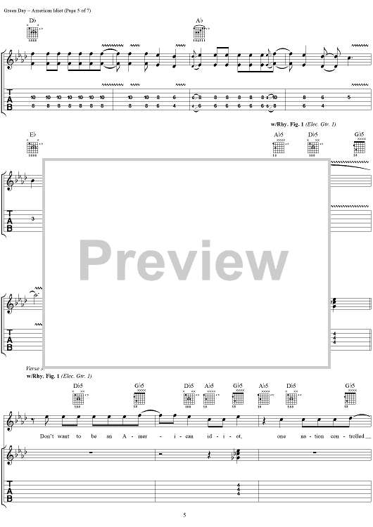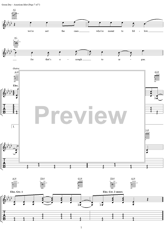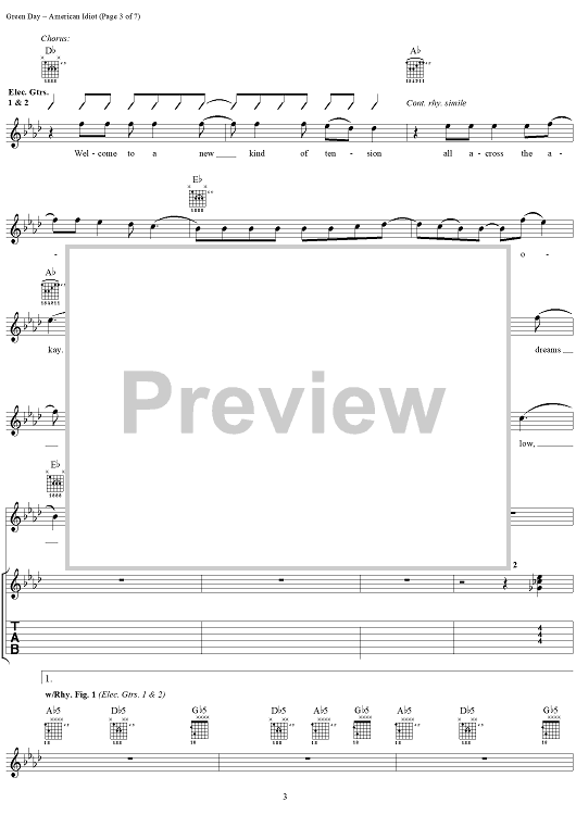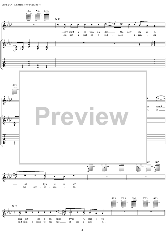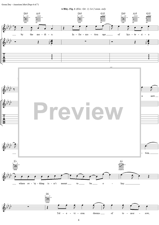 Digital Sheet Music for American Idiot by Green Day, Billie Joe scored for Guitar Tab/Vocal; id:308509