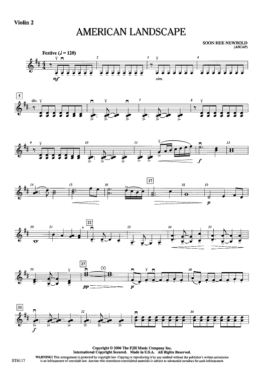 "American Landscape - Violin 2" Sheet Music by Soon Hee Newbold