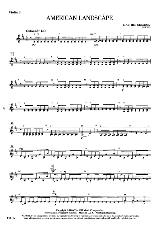"American Landscape - Violin 3 (Viola T.C.)" Sheet Music by Soon Hee Newbold