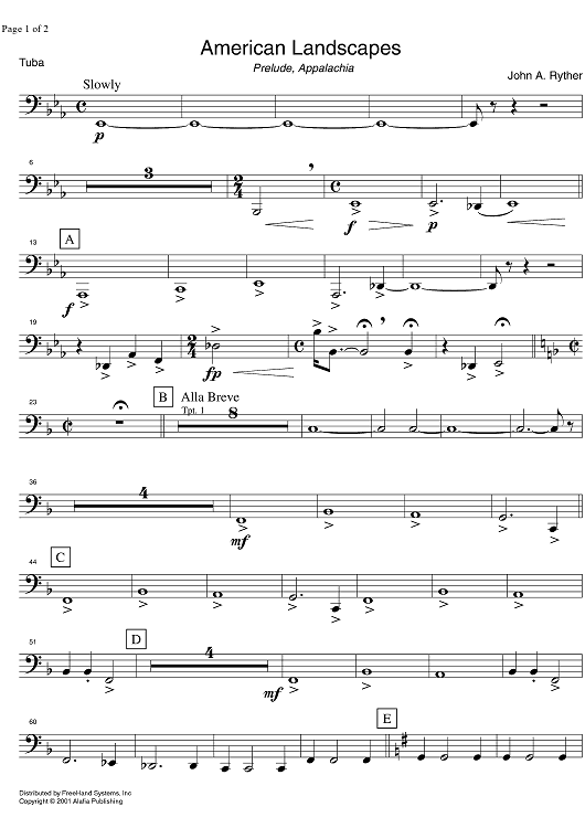Digital Sheet Music for American Landscapes - Tuba by John A. Ryther scored for Brass Quintet; id:336439