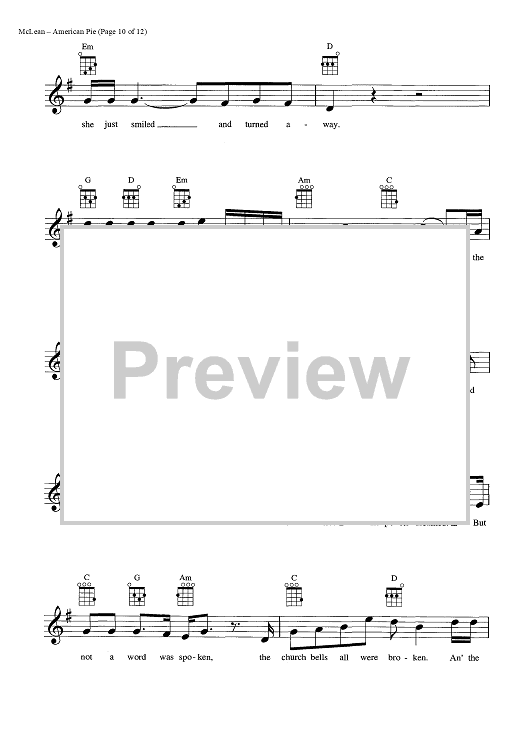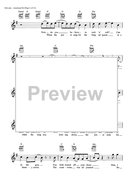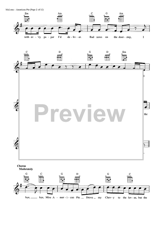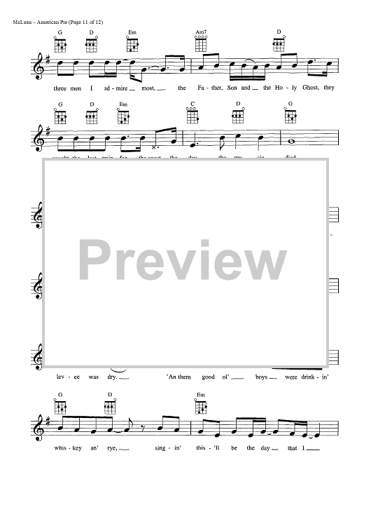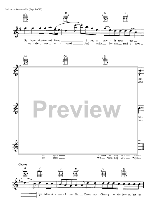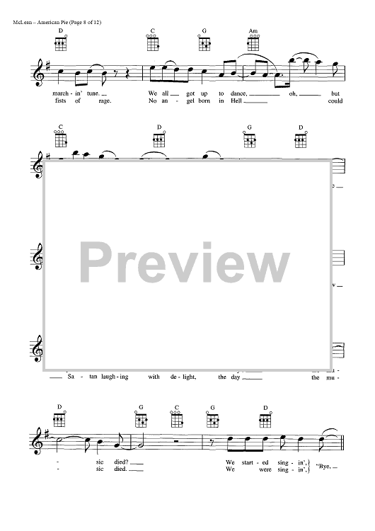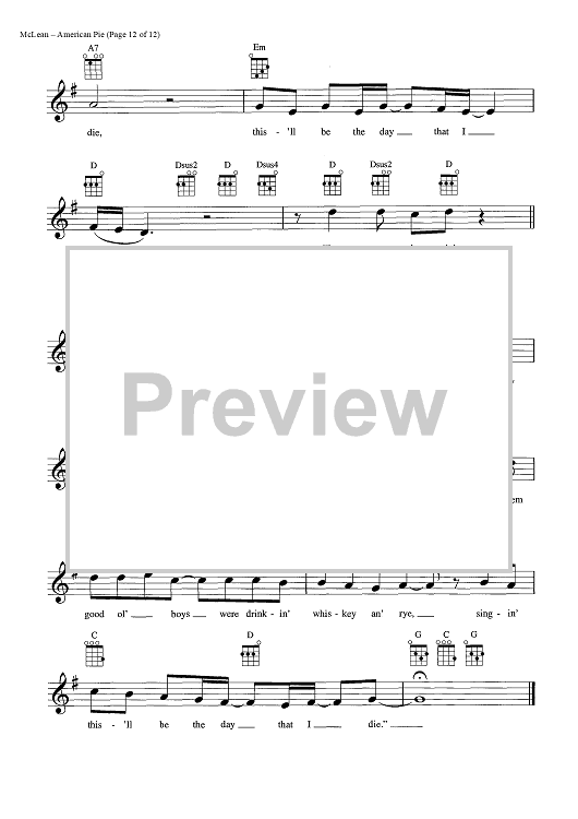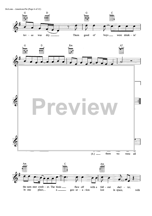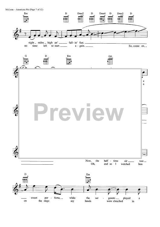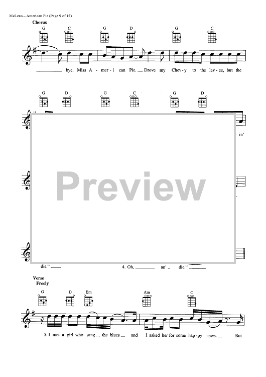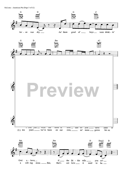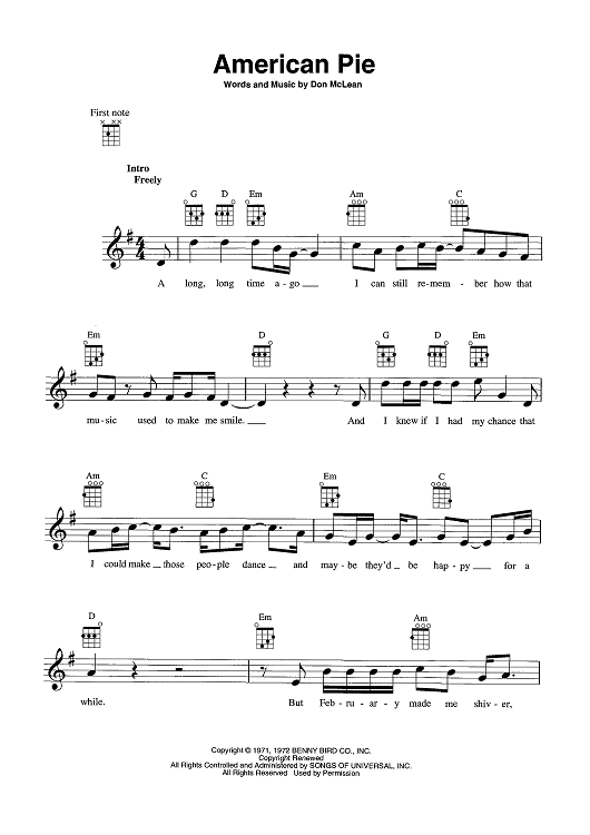 Digital Sheet Music for American Pie by Don McLean scored for Ukulele/Vocal; id:450409