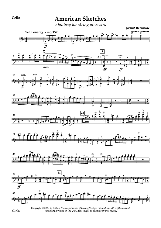 Digital Sheet Music for American Sketches: A Fantasy for String Orchestra - Cello by , Joshua Reznicow scored for String Orchestra; id:460487