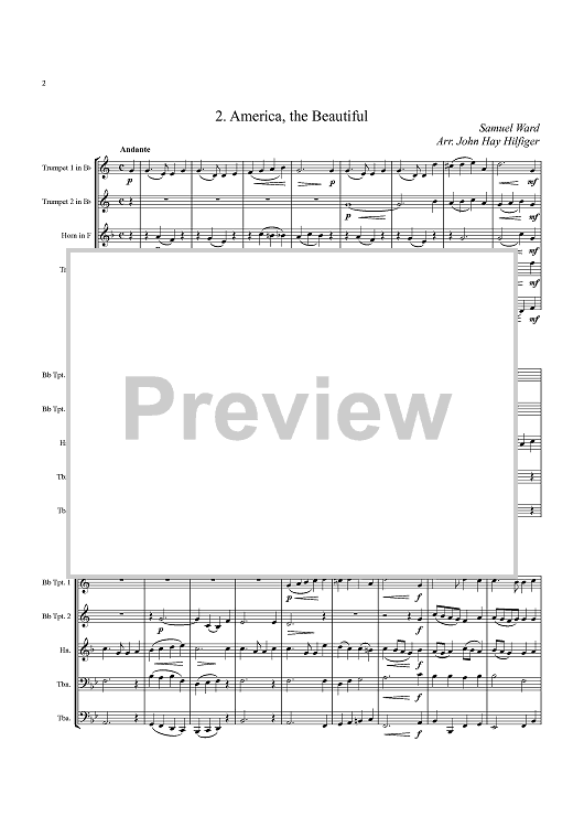 Digital Sheet Music for Americana Collection - Score by John Stafford Smith, Unknown Writer, Samuel A. Ward, John Jay Hilfiger scored for Brass Quintet; id:363490