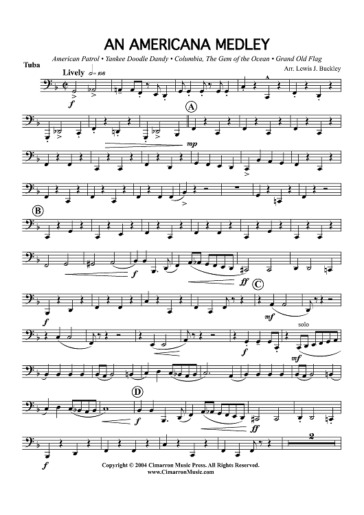 Digital Sheet Music for Americana Medley - Tuba by , Various, Lewis J. Buckley scored for Brass Quintet; id:320698