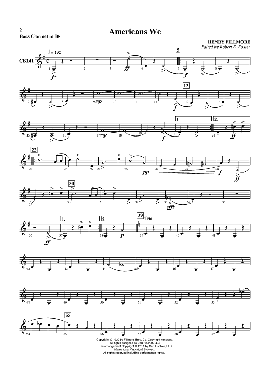"Americans We - Bass Clarinet in Bb" Sheet Music by Henry Fillmore