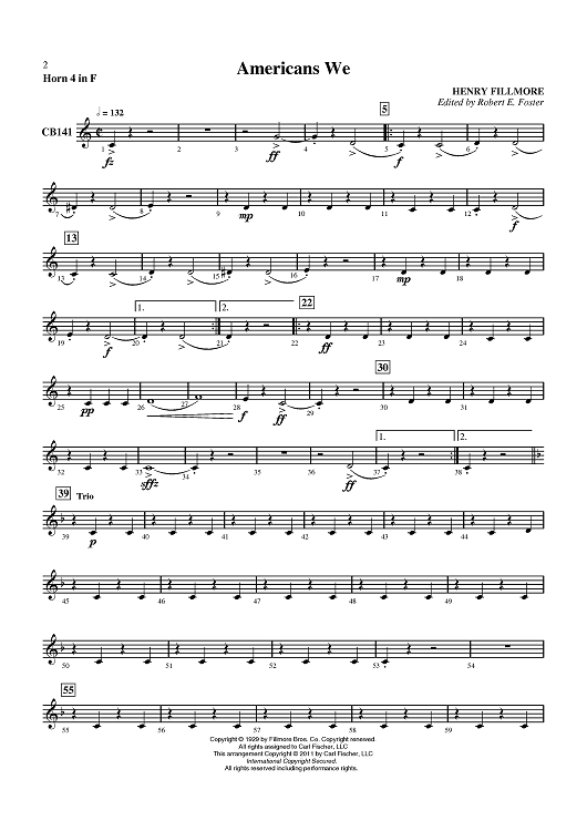 Digital Sheet Music for Americans We - Horn 4 in F by Henry Fillmore, Robert E. Foster scored for Concert Band; id:420088