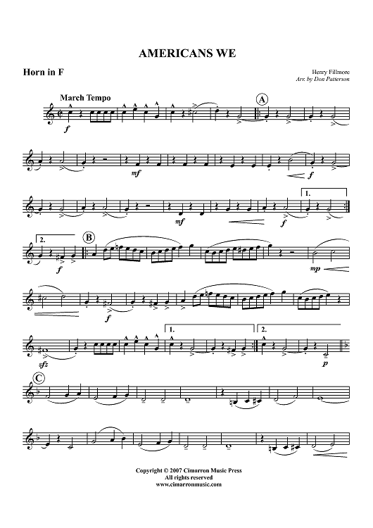 "Americans We - Horn in F" Sheet Music by Henry Fillmore