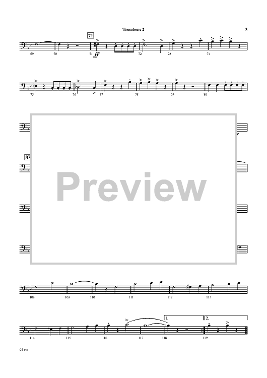 Digital Sheet Music for Americans We - Trombone 2 by Henry Fillmore, Robert E. Foster scored for Concert Band; id:420090