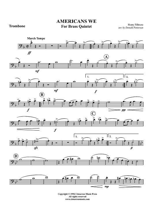 Digital Sheet Music for Americans We - Trombone by Henry Fillmore, Donald Patterson scored for Brass Quintet; id:315600