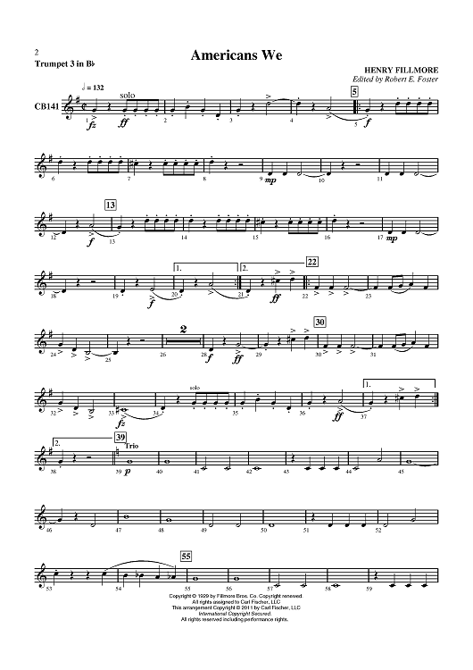 "Americans We - Trumpet 3 in Bb" Sheet Music by Henry Fillmore