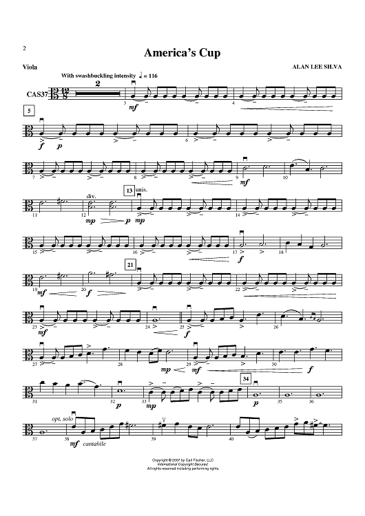 "America`s Cup - Viola" Sheet Music by Alan Lee Silva