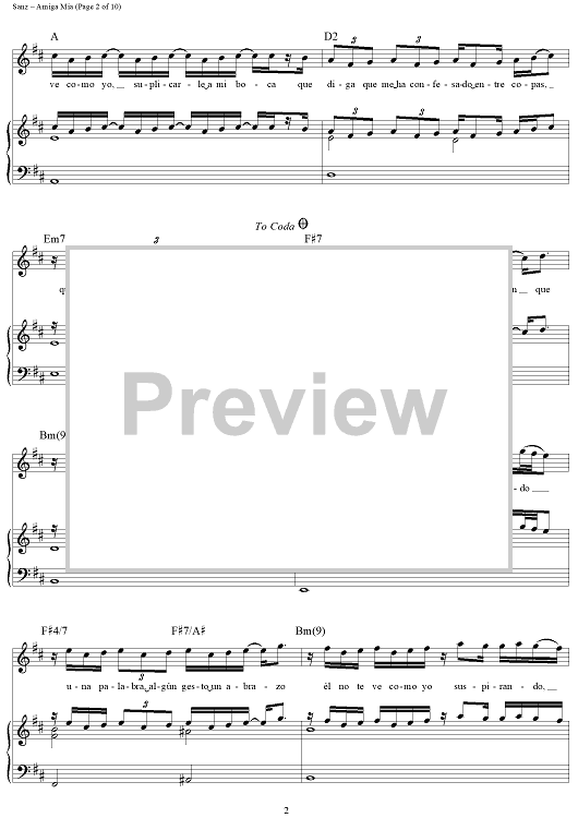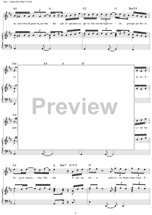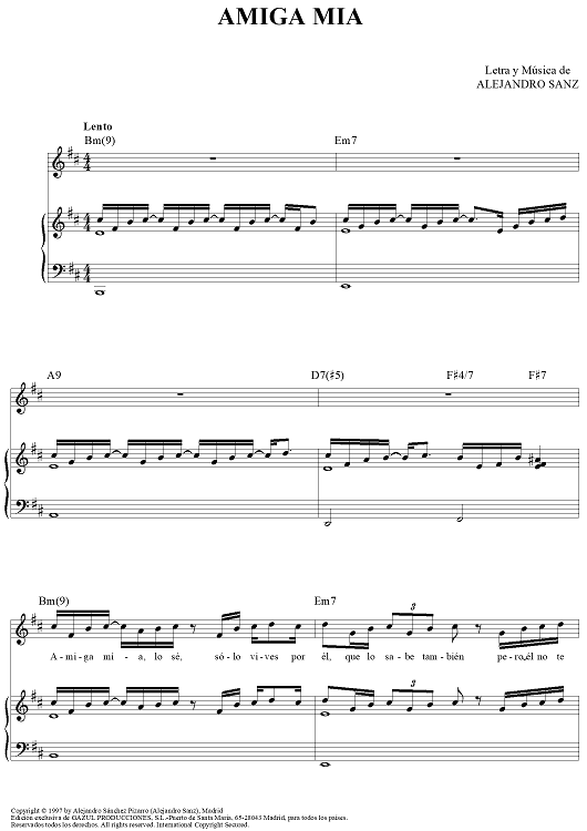 Digital Sheet Music for Amiga Mía by Alejandro Sanz scored for Piano/Vocal/Chords; id:290070