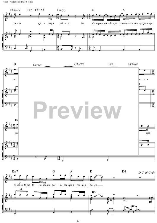 "Amiga Mía" Sheet Music by Alejandro Sanz