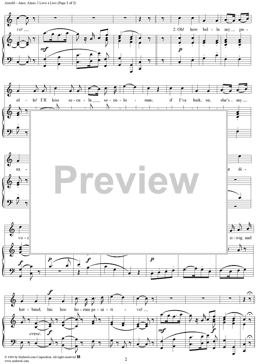 Digital Sheet Music for Amo, Amas, I love a lass by David Arnold scored for Piano/Vocal; id:270631