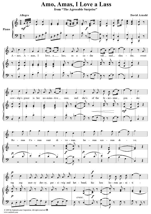 "Amo, Amas, I love a lass" Sheet Music by David Arnold