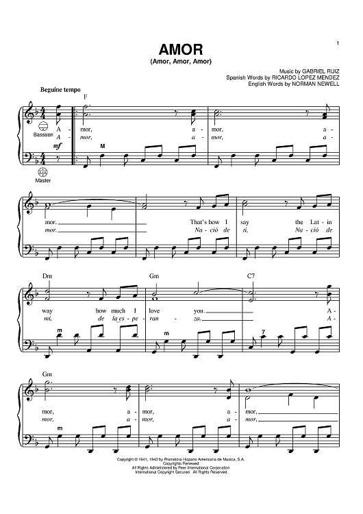 Digital Sheet Music for Amor (Amor, Amor, Amor) by Gabriel Ruiz, Norman Newell, Ricardo Lopez Mendez, Ben E. King scored for Accordion/Easy Piano; id:371091