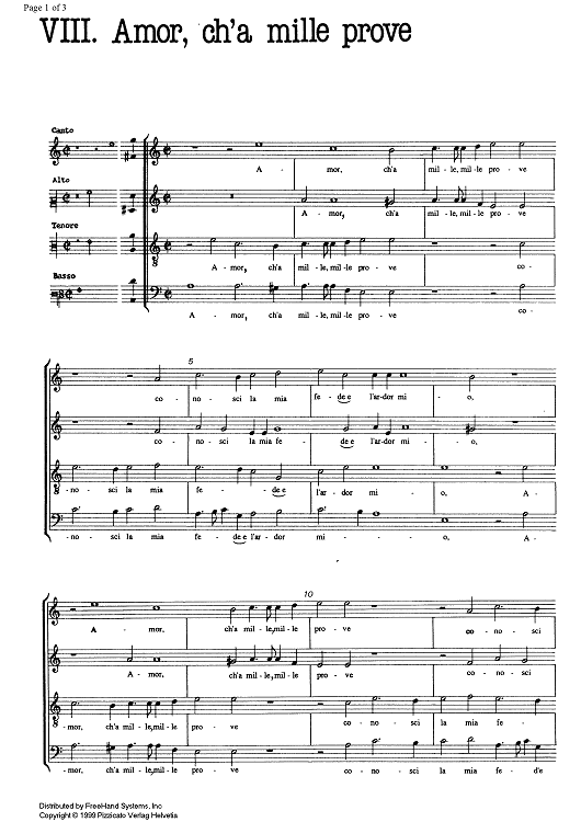 Digital Sheet Music for Amor, ch'a mille prove by , Marc' Antonio Pordenon scored for SATB Choir; id:333787