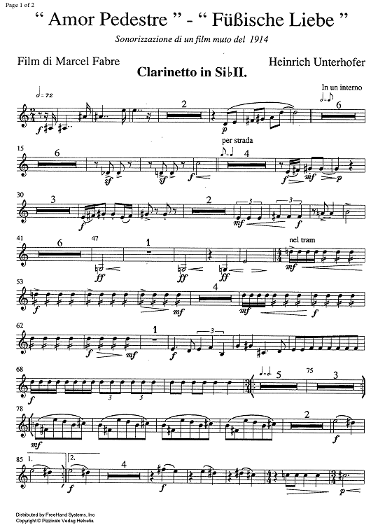 Digital Sheet Music for Amor pedestre- Fuessische Liebe [set of parts] - B-flat Clarinet 2 by Heinrich Unterhofer scored for Orchestra; id:354296
