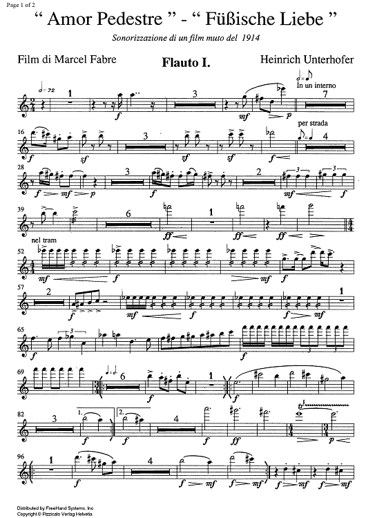 Digital Sheet Music for Amor pedestre- Fuessische Liebe [set of parts] - Flute 1 by Heinrich Unterhofer scored for Orchestra; id:354291