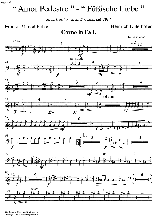 Digital Sheet Music for Amor pedestre- Fuessische Liebe [set of parts] - Horn in F 1 by Heinrich Unterhofer scored for Orchestra; id:354299