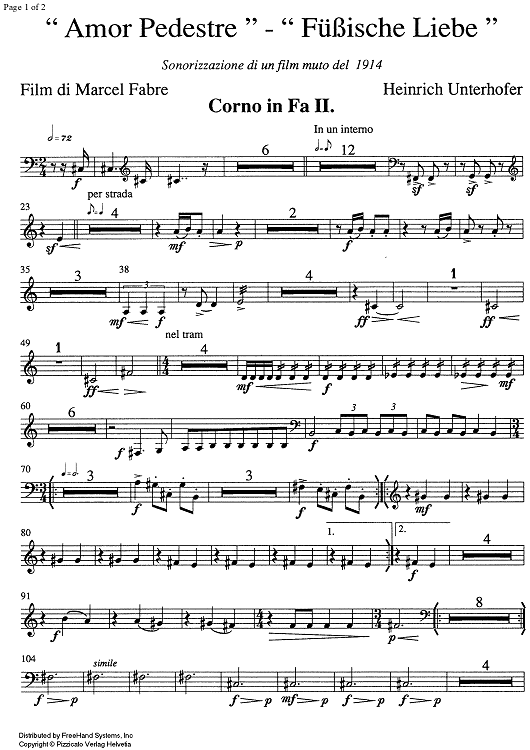 Digital Sheet Music for Amor pedestre- Fuessische Liebe [set of parts] - Horn in F 2 by Heinrich Unterhofer scored for Orchestra; id:354300