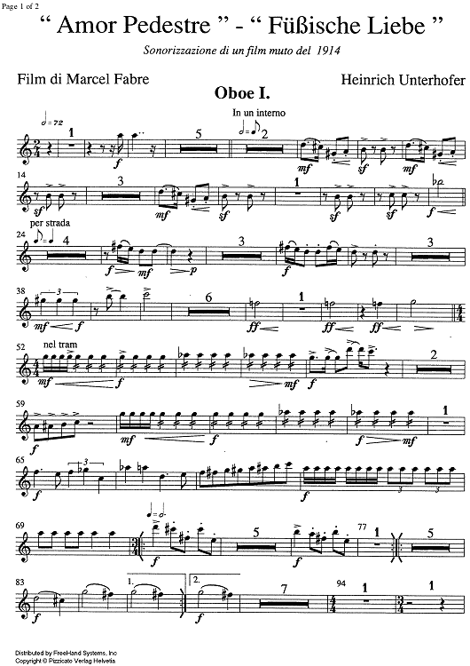 "Amor pedestre- Fuessische Liebe [set of parts] - Oboe 1" Sheet Music by Heinrich Unterhofer