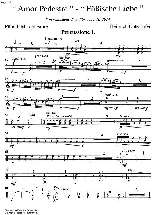 "Amor pedestre- Fuessische Liebe [set of parts] - Percussion 1" Sheet Music by Heinrich Unterhofer