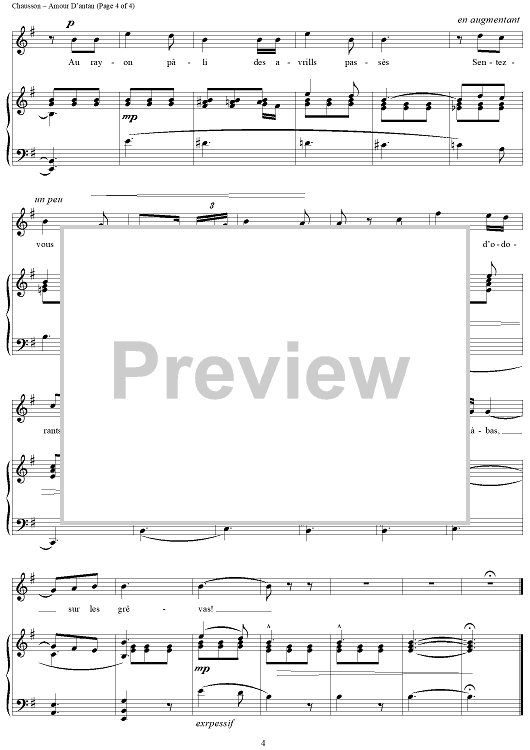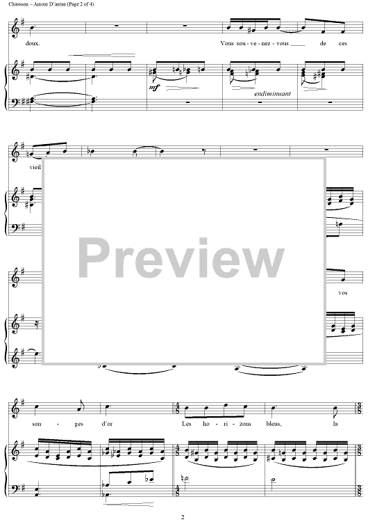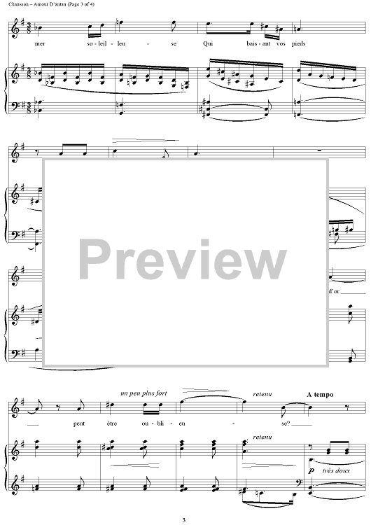 Digital Sheet Music for Amour D'Antan - (4 Mélodies, Op .8, No. 2) by Ernest Chausson, Maurice Bouchor scored for Piano/Vocal; id:444322
