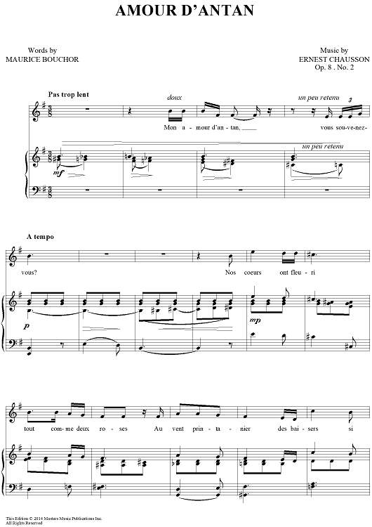 "Amour D'Antan - (4 Mélodies, Op .8, No. 2)" Sheet Music by Ernest Chausson