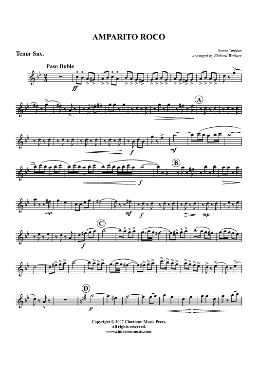 "Amparito Roco - Tenor Saxophone" Sheet Music by Jamie Texidor