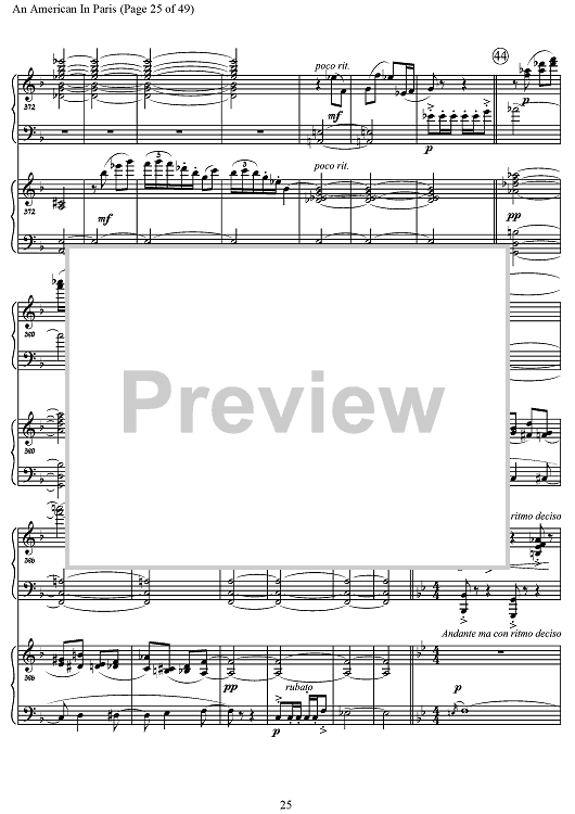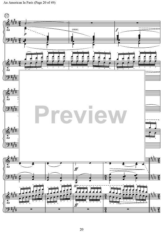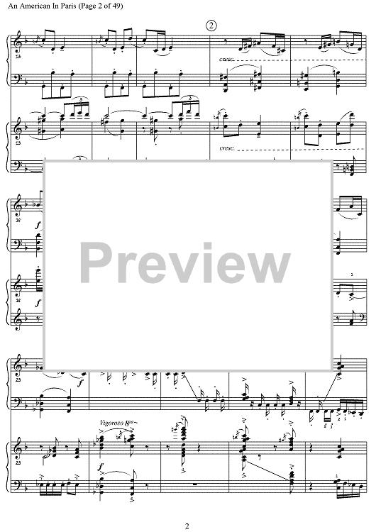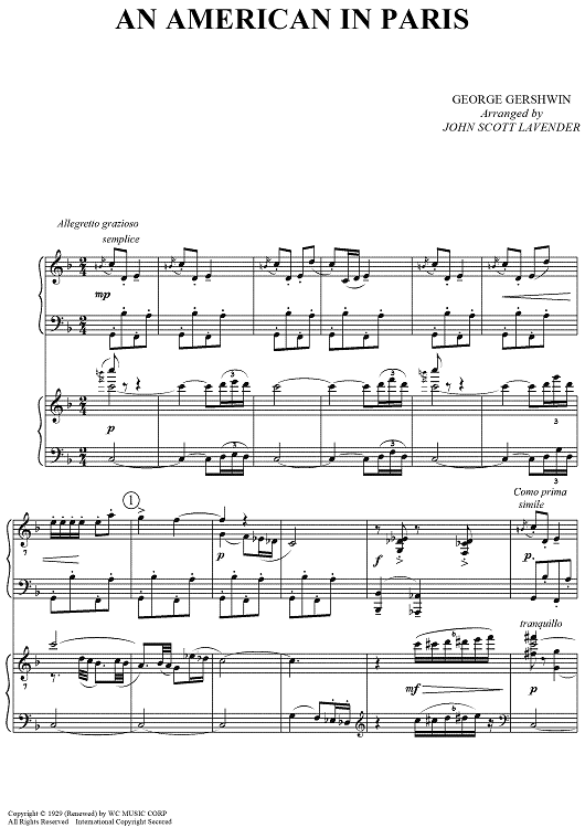 An authentic two-piano version of Gershwin's An American In Paris that is now musically complete, including material that was added to the orchestration for the premier in 1928 by the composer himself.